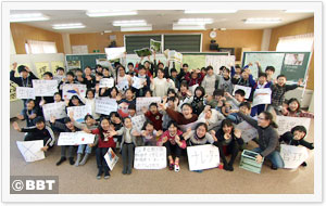 川の魚・海の魚を育てながら、命への感謝がめばえました。工業地帯を流れる用水路にはどんな魚がすんでいるのだろう?と関心をもった5年生62人が参加してプロジェクトがスタートしました。用水路での生きもの採取では、富山県ではあまりとれた記録のない、めずらしい魚がとれてビックリ!川にすむ淡水魚と、海にすむ海水魚がいっしょにすんでいることもわかりました。大切に飼育しても、死んでいく魚たち…。みんなの心に命への感謝や思いやりがめばえ、そして命をはぐくむ自然の大切さを学びました。 |